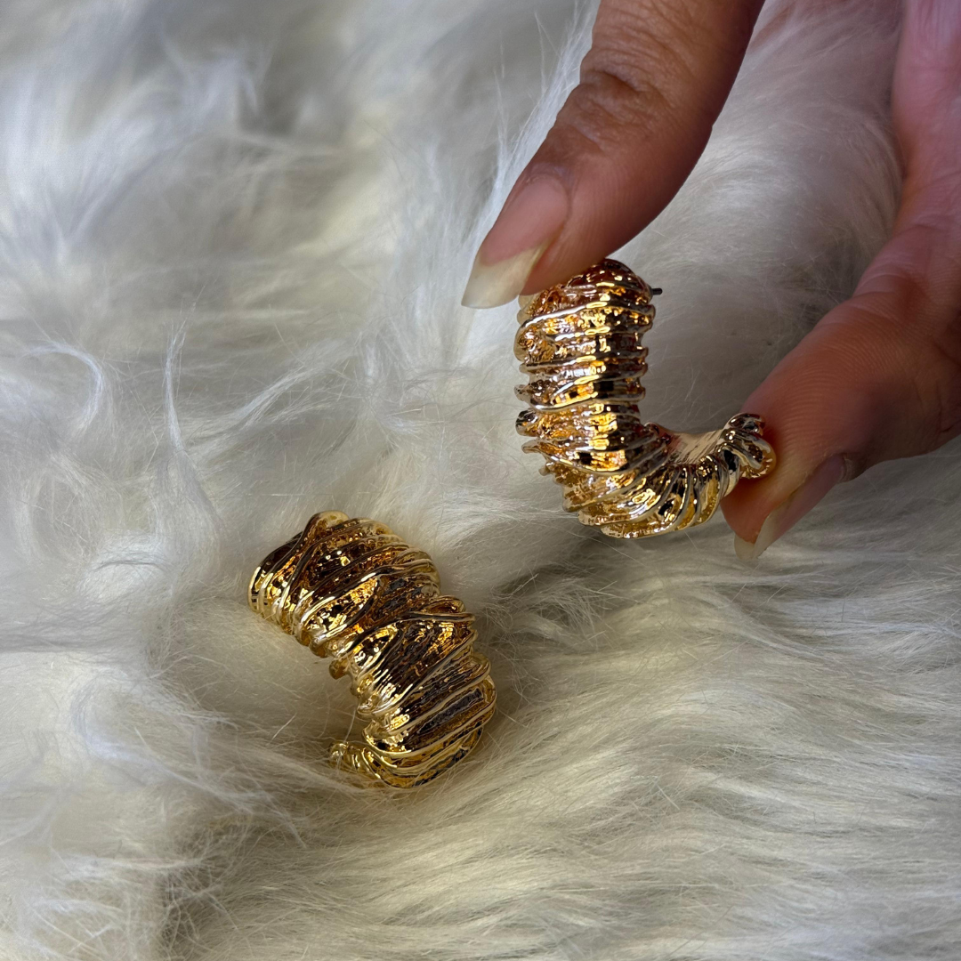 Add texture to your jewelry game with our Ribbed Radiance hoops. These chunky, ridged hoops are gold-plated with a high-shine finish and intricate surface detailing that offers both glamour and edge. A versatile pick for both casual and formal wear.